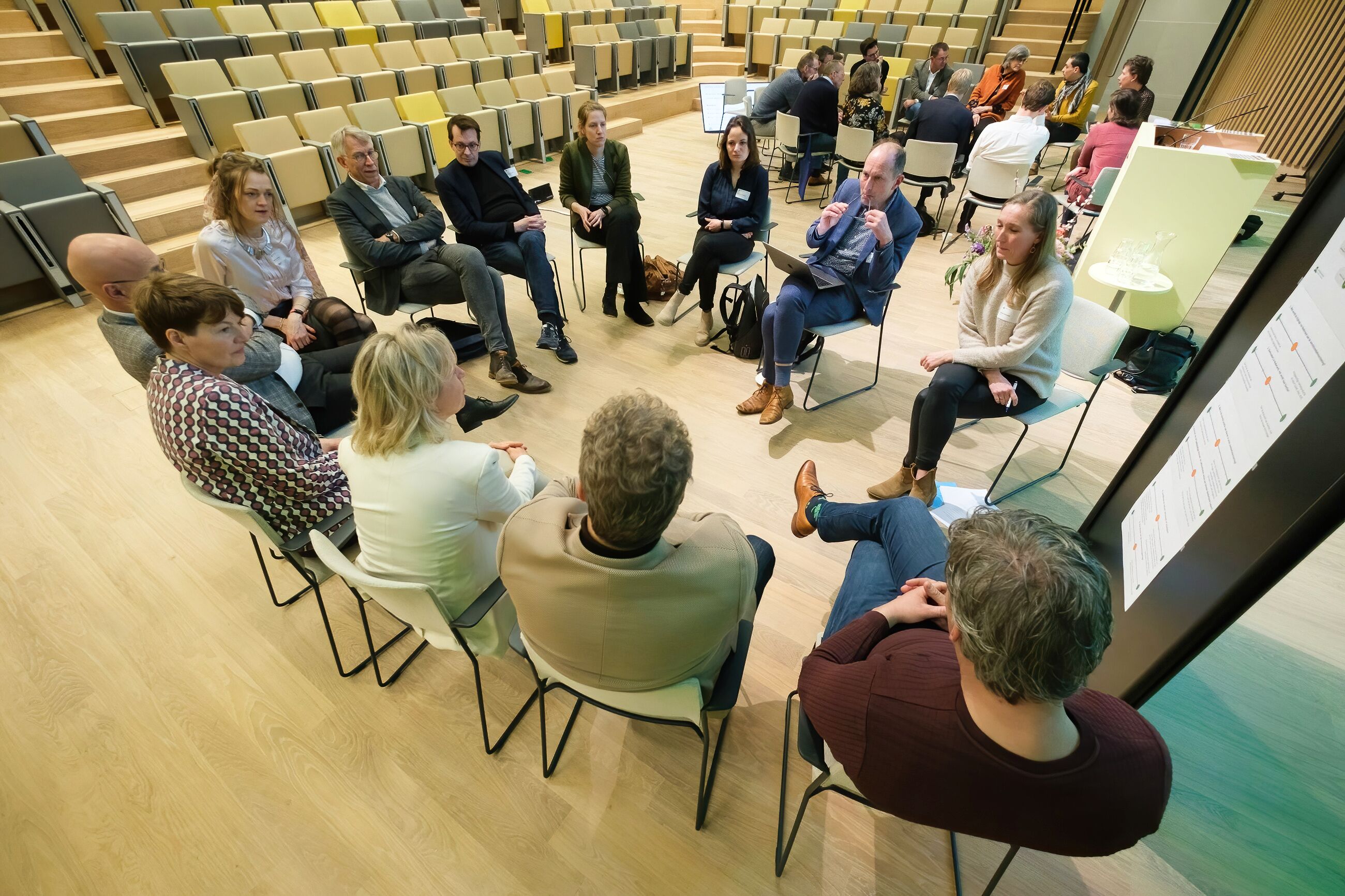 After these concise presentations, the guests discussed the dilemmas amongst themselves. Several groups concluded that a strong government lead is needed, but is not expected any time soon. Many people feel the need to take action themselves. ‘Let’s stay positive and take action with those who are willing’, one participant concluded. The failed agricultural agreement was mentioned repeatedly. Many felt that the time is ripe for a new attempt at reaching an agreement, without the government, if needed.